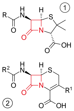 Zur Gruppe der β-Lactam-Antibiotika (auch Beta-Laktam-Antibiotika) gehören verschiedene Antibiotika oder antibakteriellen Antiinfektiva, die alle den viergliedrigen Lactam-Ring einer Azetidin-2-on-Struktur aufweisen. Sie gehen zurück auf das vom schottischen Bakteriologen Alexander Fleming 1928 aus Kulturen des Schimmelpilzes Penicillium notatum extrahierte Penicillin, das zugleich der bekannteste Vertreter dieser Gruppe ist. Sie wirken auf Bakterien während der Zellteilung bakterizid, indem die Vernetzung neugebildeter Peptidoglycane unterbunden wird. Unterschiede in ihrer Wirksamkeit begründen sich vor allem durch verschiedene Affinität und Penetrationsfähigkeit. Heutzutage werden β-Lactam-Antibiotika überwiegend halbsynthetisch erzeugt.