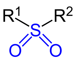 Sulfone (Einzahl Sulfon) sind eine Klasse von Verbindungen mit organisch gebundenem Schwefel und Sauerstoff mit der allgemeinen Strukturformel R1-S(=O)2-R2, dabei sind R1 und R2 organische Reste. Die Einzahl Sulfon wird häufig auch als Trivialname für das Dimethylsulfon verwendet (R1 = R2 = CH3). Dimethylsulfon ist ein Beispiel für ein symmetrisches Sulfon (R1 = R2). Bei unsymmetrischen Sulfonen gilt: R1 ≠ R2. In der Natur besitzen Sulfone nur eine untergeordnete Bedeutung.[1]