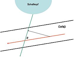 Der Doppler-Effekt tritt immer dann auf, wenn Sender und Empfänger einer Welle sich relativ zueinander bewegen. Zur Bestimmung der Blutflussgeschwindigkeit in den Blutgefäßen oder im Herzen detektiert man das von den Blutkörperchen
