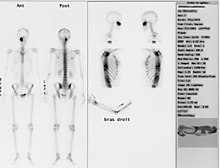 Anwendung findet die Szintigrafie beispielsweise in der Tumordiagnostik. Der radioaktiv markierte Tracer wird sich vorzugsweise in Gewebe anreichern, das einen erhöhten Stoffwechsel aufweist und daher stärker vaskularisiert (durchblutet) ist („Hot Spot“). Das ist typisch für Tumorgewebe. Im Szintigramm erscheinen diese Gewebepartien dunkler oder stärker/anders gefärbt. Bei Fragestellungen, die sich auf das Skelettsystem beziehen, lässt sich mit diesem Vorgehen sehr schnell ein umfassender Überblick gewinnen, unklare Befunde können präzisiert werden. Besteht etwa der Verdacht einer gelockerten Endoprothese, weist die Szintigrafie das sicher nach oder schließt es aus. Der Aktivitätszustand und das Verteilungsmuster einer rheumatischen Erkrankung lässt sich abschätzen, die Frage nach Skelettmetastasen lässt sich beantworten.