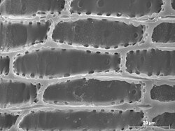 Querschnitt eines Bohnenblattes im Rasterelektronenmikroskop. Fachbereich Biologie, Universität Hamburg