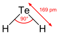 Tellurwasserstoff ist gewinkelt aufgebaut (Bindungswinkel 89,5°), die Bindungslänge Te–H beträgt jeweils 169 pm.[9]