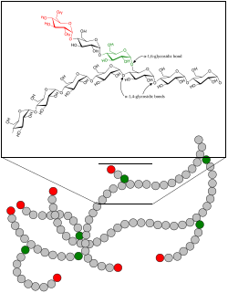 Das 1,4-α-Glucan-verzweigende Enzym (GBE) ist dasjenige Enzym, das Poly-Glucose-Ketten an langkettige Polysaccharide hinzufügt, aber nicht an das Ende der Kette, sondern verzweigend, etwa im Abstand von 10 bis 14 Glucoseeinheiten zur nächsten Verzweigung (s. Abb.). Diese Reaktion ist (zusammen mit der Verlängerung der Kette) die abschließende beim Aufbau von Glykogen. Die Verzweigungen sind notwendig, um die Löslichkeit des Glycogen zu erhöhen, und damit den osmotischen Druck in der Zelle nicht zu hoch werden zu lassen. GBE kommt in den meisten Lebewesen vor, das Pflanzenenzym hat die Namen Amylopectin-verzweigendes Enzym bzw. Q-Enzym. Im Menschen ist es besonders in der Leber und den Muskeln lokalisiert. Mutationen am GBE1-Gen können zur Glykogenspeicherkrankheit Typ IV (Morbus Andersen) oder der Adulten Polyglucosankörper-Erkrankung führen.[1][2]