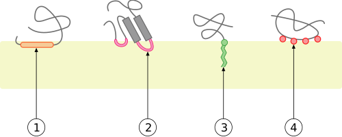 3) Interaktion durch eine Bindung an Membranlipide.