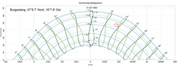 Sonnenstandsdiagramm, aus dem die größte Sonnenhöhe ablesbar ist