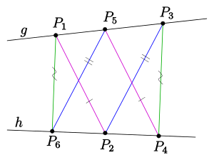 bezeichnet. Dieser Satz wurde von Gerhard Hessenberg, nach dem er benannt ist, 1905 (lückenhaft) bewiesen. Er ist von fundamentaler Bedeutung für die synthetische Geometrie. Ein vollständiger Beweis (über verschiedene Hilfssätze) findet sich im Lehrbuch von Lüneburg.