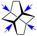 Twistan – die vier blauen Pfeile weisen auf die Brückenkopfatome (Kohlenstoffatome) -