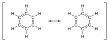 Ein Spezialfall delokalisierter Ladungen findet sich in konjugierten Systemen aromatischer Verbindungen. Ihre π-Elektronen sind nicht in isolierten, zwei Kohlenstoff-Atomen zugehörigen π-Orbitalen lokalisiert, sondern gehören Molekülorbitalen an, die sich über mehrere C-Atome erstrecken; die π-Elektronen sind in einer „Elektronenwolke“ über die Kohlenstoffatome des gesamten aromatischen Systems verteilt. Ein klassisches Beispiel für ein solches aromatisches Molekül mit delokalisierten π-Elektronen ist Benzol. Die Ringstruktur des Benzols wurde 1865 (fr. Artikel) (dt. Artikel 1866) und die Grenzstrukturen 1872 von August Friedrich Kekulé von Stradonitz korrekt postuliert.