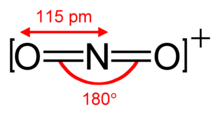 Das Nitroniumion ist isoelektronisch zu Kohlenstoffdioxid und besitzt ebenfalls die lineare Struktur mit einem ONO-Bindungswinkel von 180°.