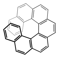Helicale Moleküle wie beispielsweise die Helicene sind axialchiral. Aufgrund sterischer Hinderung liegen die kondensierten Benzolringe schraubenförmig um eine Achse angeordnet und können nicht in ihr Spiegelbild übergehen. Diese Art der axialen Chiralität nennt man auch Helizität.