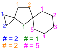 Spiro[4.4]nonatetraen mit Angabe der Anzahl (#) der zwei Brückenglieder
