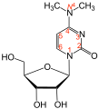 Beispielsweise trägt die Verbindung N,2-Dimethylanilin zwei Methylreste am Anilingrundkörper, deren Positionen am Stickstoff-Atom der Aminofunktion (bezeichnet durch das kursive „N“) und am C-2-Kohlenstoffatom des Aromaten (gekennzeichnet durch die arabische Zahl 2) eindeutig zugeordnet werden. Sind zwei (oder mehr) gleichartige Heteroatome im Molekül vorhanden, werden diese mit hochgestellten Strichen unterschieden wie beispielsweise bei N,N′-Dimethylharnstoff. Ist hiermit keine eindeutige Zuordnung zu erzielen, werden die kursiv gesetzten Heteroatomsymbole durch hochgestellte Lokantenziffern ergänzt, wie im N4,N4-Dimethylcytidin; so wird erkennbar, an welches Stickstoff-Atom die beiden Methylgruppen gebunden sind.