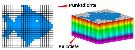 Die maximal mögliche Menge an (Farb-)Abstufungen wird in Bits angegeben und benennt damit die Farbtiefe eines Bildes. Diese Abstufungen stellen eine Skala dar, auf der die eigentliche Farbinformation gespeichert wird. Die Farbtiefe ist also die mathematische Basis der tatsächlichen Farbinformation. In der Praxis besitzt ein Bild niemals die Menge an Farben, die der Umfang dieser Skala (Farbtiefe) zur Verfügung stellt.