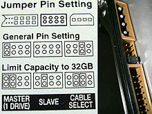Die Adresse von Parallel-SCSI-Festplatten kann nicht wie IDE-Festplatten nur zwischen zwei, sondern je nach verwendetem Controller zwischen 7 bzw. 15 Adressen ausgewählt werden. Dafür befinden sich an älteren SCSI-Laufwerken drei bzw. vier Jumper zur Festlegung der Adresse – SCSI-ID-Nummer genannt –, die es erlauben, bis 7 bzw. 15 Geräte pro SCSI-Bus einzeln zu adressieren. Die Anzahl der maximal möglichen Geräte ergibt sich aus der Anzahl der ID-Bits (drei bei SCSI bzw. vier bei Wide-SCSI) unter Berücksichtigung der vom Controller selbst belegten Adresse #0. Neben Jumpern fand man selten die Adresseinstellung auch durch einen kleinen Drehschalter. Bei modernen Systemen werden die IDs automatisch vergeben (nach der Reihenfolge am Kabel), und die Jumper sind nur noch relevant, wenn diese Vergabe beeinflusst werden soll.