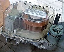 - 1973: IBM startet das „Winchester“-Projekt, das sich damit befasste, einen rotierenden Speicher mit einem fest montierten Medium zu entwickeln (IBM 3340, 30 MB Speicherkapazität, 30 ms Zugriffszeit). Beim Starten und Stoppen des Mediums sollten die Köpfe auf dem Medium aufliegen, was einen Lademechanismus überflüssig machte. Namensgeber war das Winchester-Gewehr. Diese Technik setzte sich in den folgenden Jahren durch. Bis in die 1990er-Jahre wurde deshalb für Festplatten gelegentlich die Bezeichnung Winchester-Laufwerk verwendet.