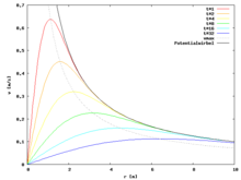 Potentialwirbels ab. Danach nimmt die Geschwindigkeit rasch ab, siehe die rote