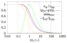 Das Verhältnis der Wirbelstärke zu ihrem Maximum bei gegebenem Radius r (grüne Kurve im Bild) ist demnach: