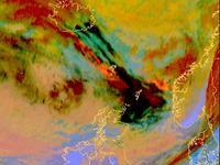 - dünne Cirren in sehr dunklem rot bis schwarz, außer bei hellem Untergrund (Wüste) oder darunter liegenden Wolkenschichten, dann kann es zu Grüntönen kommen