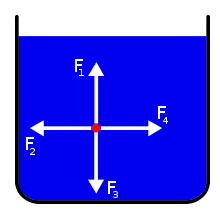 Bild 3: Die Kraft, die auf einen Punkt wirkt (in Flüssigkeiten oder Gasen) ist in alle Richtungen gleich groß.