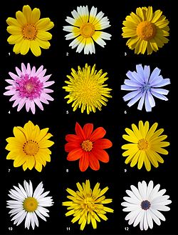 - Unterfamilie Asteroideae Lindl.:[2][10] Sie ist mit etwa 65 % der Arten die größte Unterfamilie. Sie enthält etwa 20 Tribus, 1135 Gattungen mit etwa 16.200