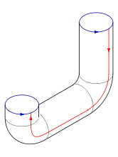 Anmerkung: Die Kleinsche Flasche lässt sich so zerteilen, dass zwei Möbiusbänder daraus entstehen (siehe die Abbildung rechts).