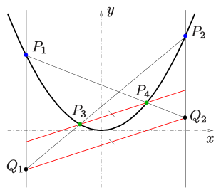 Eine Parabel kann geometrisch als Ortslinie beschrieben werden: