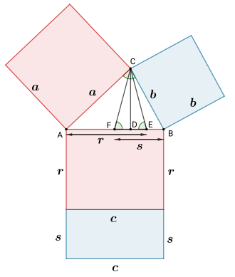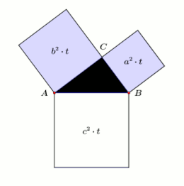 In geometrischer Deutung ist demnach in einem rechtwinkligen Dreieck die Summe der Flächen der beiden Quadrate über den Katheten gleich der Fläche des Quadrats über der Hypotenuse.