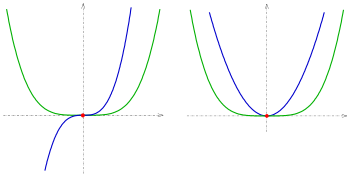 - b) gemeinsame Tangenten haben und sich in dem Punkt kreuzen (berührendes Schneiden, siehe Bild).