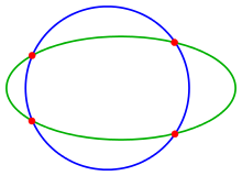 Die Aufgabe, die Schnittpunkte einer Ellipse/Hyperbel/Parabel mit einer Ellipse/Hyperbel/Parabel zu bestimmen, führt bei Elimination einer Koordinate i.a. auf eine Gleichung vierten Grades, die nur in speziellen Fällen leicht lösbar ist. Die Schnittpunkte lassen sich allerdings auch iterativ mit Hilfe des 1- bzw. 2-dimensionalen Newton-Verfahrens bestimmen, je nachdem man a) beide Kegelschnitte implizit (→ 2-dim. Newton) oder b) einen implizit und den anderen parametrisiert darstellt (→ 1-dim. Newton). Siehe hierzu den nächsten Abschnitt.