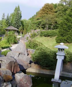 der Rosengarten, der Japanische Fels- und Wassergarten, der Gräsergarten und die Staudenschau, darüber hinaus der Skulpturengarten,