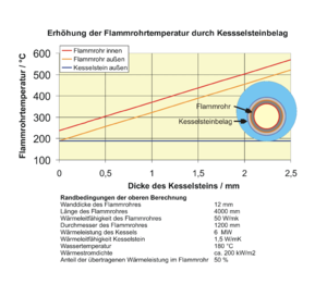 Durch die isolierende Wirkung des Kesselsteins verringert sich der Wärmeübergang im Kessel. Die Austrittstemperatur des Rauchgases nimmt merklich zu, und somit sinkt der Feuerungswirkungsgrad, also die Temperaturdifferenz zwischen Feuerstelle und Schornstein.