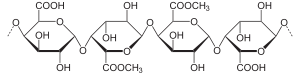 ![]() Ausschnitt aus dem Rückgrat von Pektinen: Poly-α-(1→4)-Galacturonsäure. |