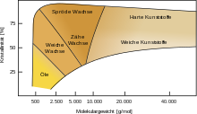 Dabei sind Eigenschaften, die nur eine geringe Bewegung der Teile einer Probe relativ zueinander erfordern, stärker von der Kristallinität und weniger von der molaren Masse der Probe abhängig; dies umfasst Schmelzpunkt, Erweichungspunkt, Elastizitäts- und Biegemodul, Streckgrenze und Oberflächenhärte. Eigenschaften, die eine umfassendere Bewegung der Teile einer Probe umfassen, sind dagegen stärker von der molaren Masse abhängig; dies umfasst die Zugfestigkeit, den Versprödungspunkt bei niedrigen Temperaturen und die Reißfestigkeit.