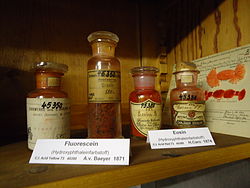 Eosin Y oder Eosin G (von altgriechisch ἠώς ēōs „Morgenröte“), generischer Name C.I. Acid Red 87 oder C.I. 45380, kurz auch Eosin genannt, ist ein roter, erstmals 1871 von Heinrich Caro hergestellter[7] Säurefarbstoff aus der Gruppe der Xanthenfarbstoffe wie auch der Triphenylmethanfarbstoffe und kann zum Färben von Textilien und Papier verwendet werden. Die wässrige Lösung des Farbstoffs fluoresziert grünlich.[1]
