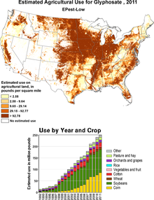 Im Jahr 2007 wurden von keinem Herbizid mehr in der US-Landwirtschaft eingesetzt als von glyphosathaltigen Produkten. Insgesamt wurden 2011 mehr als 110.000 Tonnen verbraucht, davon ein Großteil im Soja- und Maisanbau. Monsantos Patente auf Glyphosat sind in den meisten Staaten mittlerweile abgelaufen. Etwa die Hälfte des Angebots stammte im Jahr 2010 aus China. Neben Roundup sind Dutzende anderer glyphosathaltiger Herbizide auf dem Markt, beispielsweise Clinic von Nufarm, Touchdown von Syngenta, Vorox (Compo) oder GlyphoMAX von Dow AgroSciences.