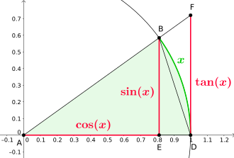 Durch elementargeometrische Überlegungen am Einheitskreis (siehe Zeichnung rechts) lässt sich zeigen, dass