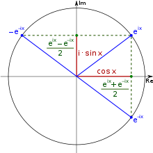 Sinus und Kosinus ergeben sich aus Realteil und Imaginärteil der komplexen Exponentialfunktion.