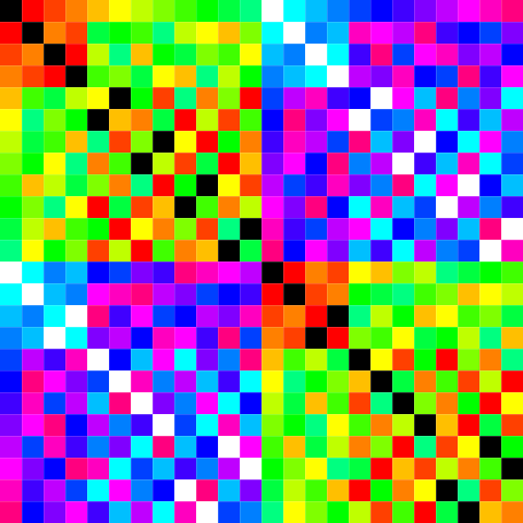 dem ersten 12x12-Block (mit den Farben Rot bis Grün) der Verknüpfungstafel der