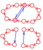 Zyklen um eins, wenn die vertauschten Elemente innerhalb eines Zyklus