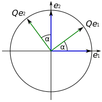 - Drehmatrizen, also Matrizen, die eine Drehung um den Koordinatenursprung in der euklidischen Ebene beschreiben, sind orthogonal. Bezeichnet