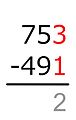Die Subtraktion kann jetzt durchgeführt werden. Das Ergebnis wird unter den Strich geschrieben. -
