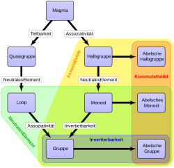 | Gruppe | EANI | Gleichzeitig ein Monoid und eine Quasigruppe. Gruppen wurden Anfang des 19. Jahrhunderts zur Beschreibung von Symmetrien