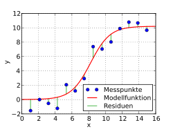 sollte, hier eine logistische Funktion. Deren Parameter werden nun so bestimmt, dass die Summe der
