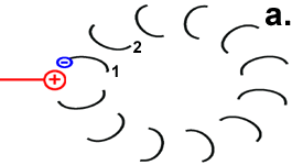 Die Bewegung des Rotor-Peptids hat allerdings gleichzeitig die nächste Foc-Peptidkette 2 in den „Bann“ der positiv geladenen Arginin-Gruppe gezogen. |