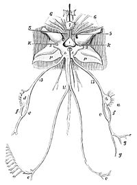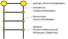 Bei den Gliederfüßern kommt es bereits zur Ausbildung von höheren Verarbeitungszentren in Form mehrerer Nervenknoten (Ganglien). Diese Ganglien sind durch zwei Nervenstränge strickleiterartig miteinander verbunden, weshalb man hier von einem Strickleiternervensystem spricht. Bei den meisten dieser Tiere ist das Oberschlundganglion besonders groß ausgebildet. Es übernimmt bereits Funktionen eines „Gehirns“, insbesondere die Verarbeitung von Sinnesreizen. Die Ganglien der Körpersegmente steuern häufig die Bewegungen der Bein- und Flügelmuskulatur weitgehend autonom. Die Strickleiternervensysteme liegen (mit Ausnahme des Oberschlundganglions) unterhalb des Verdauungsapparates. Daher spricht man auch vom Bauchmark.