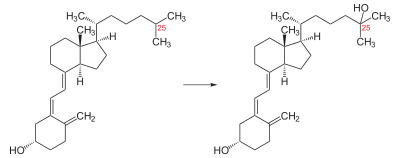 Diese enzymatische Reaktion ist wahrscheinlich keiner nennenswerten Regulation unterworfen, da der 25(OH)Vitamin-D3-Spiegel im Blut ziemlich genau die längerfristige Vitamin-D3-Versorgung der letzten drei bis vier Monate widerspiegelt, während der Vitamin-D3-Spiegel die Versorgung der letzten Stunden bis Tage anzeigt.