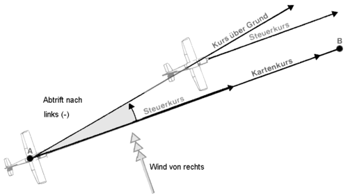 Bei Segelflugzeugen und langsamen Motorflugzeugen kann die Abdrift bei starkem Seitenwind 30° und mehr betragen. Wegen der Deutlichkeit des Effekts kann man den Kurs aber freiäugig – auch ohne Navigationsinstrumente – durch „Vorhalten“ gut korrigieren. Die kurzfristige Wirkung von Böen kann mit dem Wendezeiger „ausgependelt“ werden.