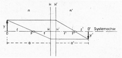 Es bedeuten H, H' die Hauptebenen eines optischen Systems (H, H' auch für Hauptpunkte),