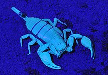 Die Cuticula der Skorpione fluoresziert bei Bestrahlung mit Ultraviolettstrahlung. Dabei werden eingelagerte beta-Carboline und 7-Hydroxy-4-methylcoumarin angeregt. Auch nach dem Ableben der Tiere bleibt dieser Effekt erhalten. Mit Hilfe entsprechender Lampen können die Tiere daher bei Dunkelheit leicht entdeckt werden.