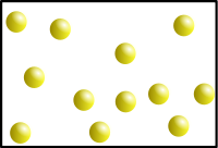 Abstand: Durch die schnelle Bewegung der Teilchen in einem Gas sind sie weit voneinander entfernt. Sie stoßen nur hin und wieder einander an, bleiben aber im Vergleich zur flüssigen Phase auf großer Distanz.